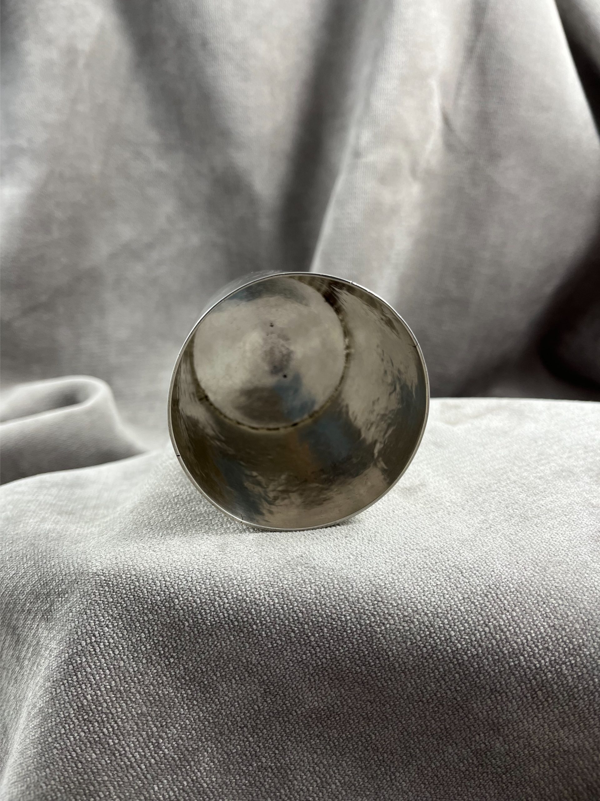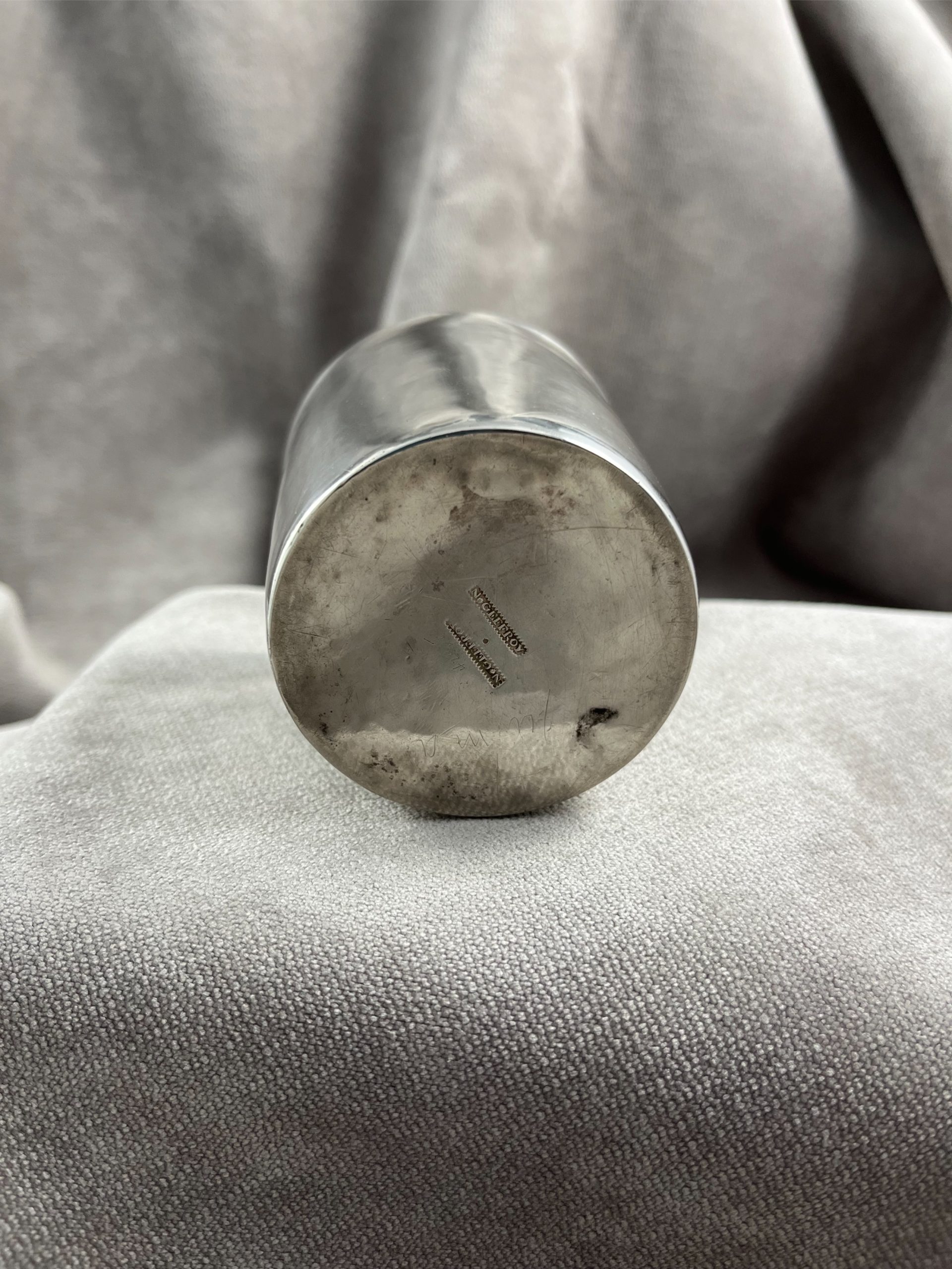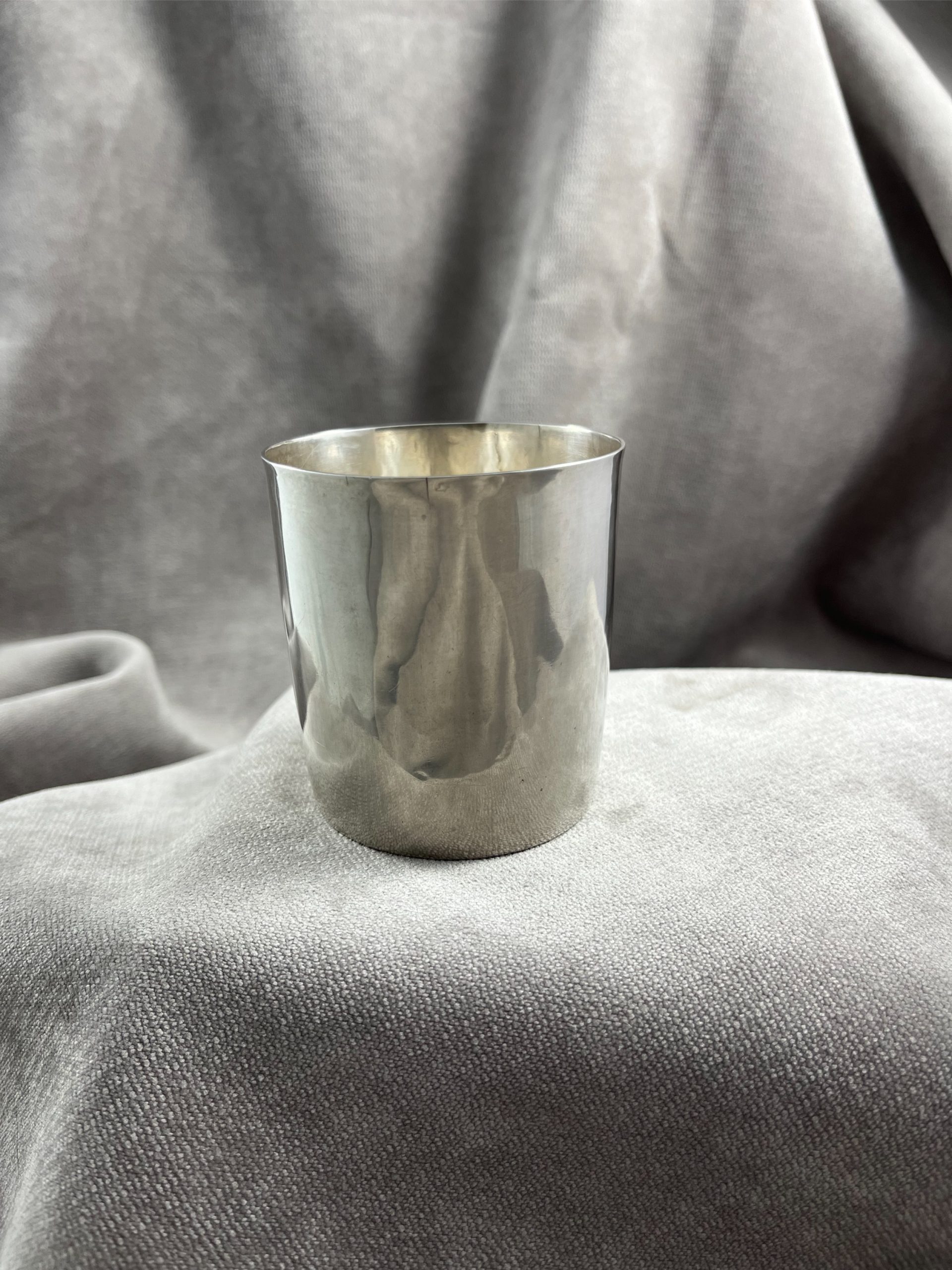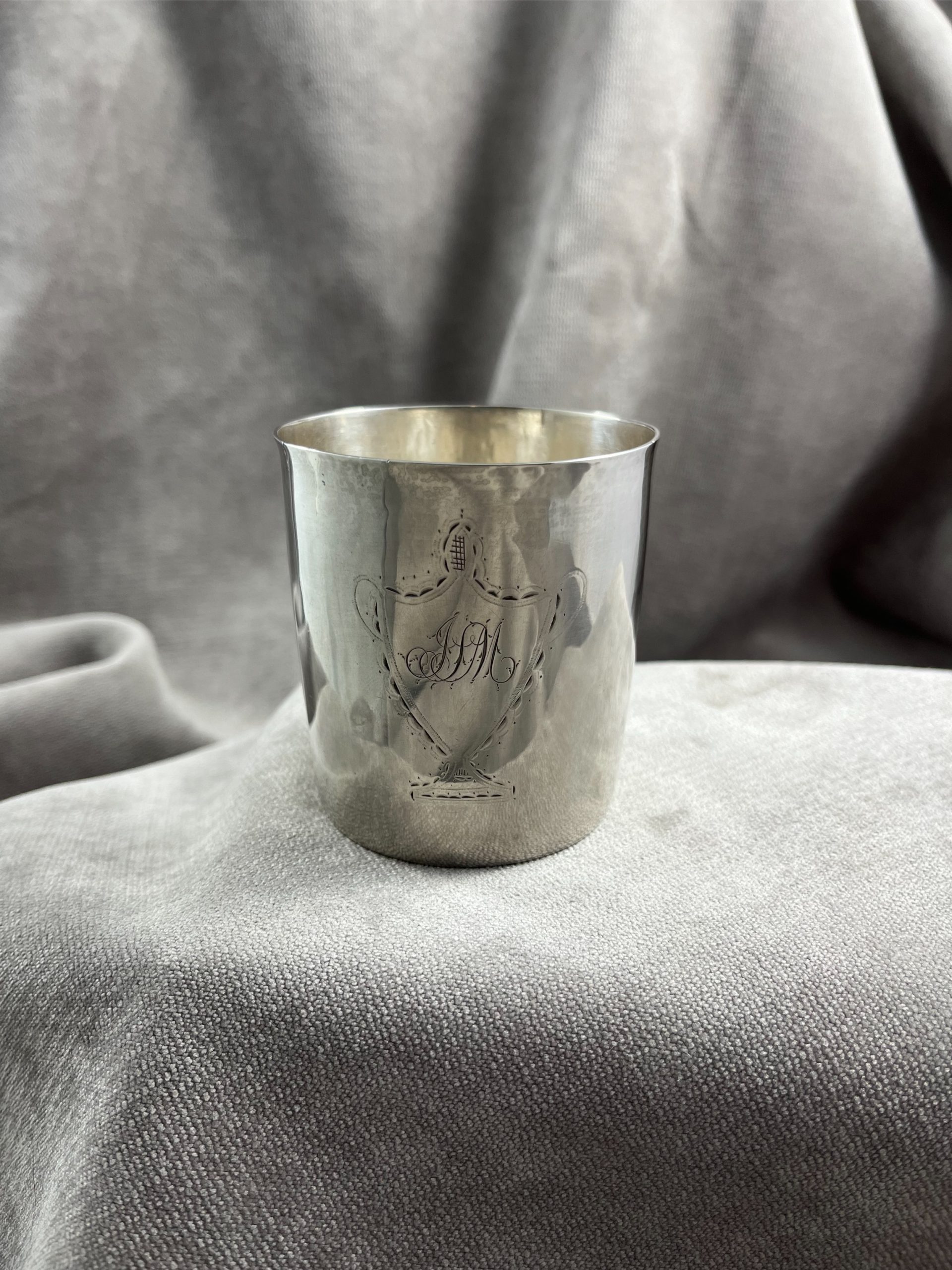 This charming silver beaker was made by Nicholas Geffroy in Newport, Rhode Island circa 1795. It measures 3 inches in height and 2 3/4 inches in diameter. It weighs in at 2 Oz. 15 Dwt. Silver by him is quite scarce.