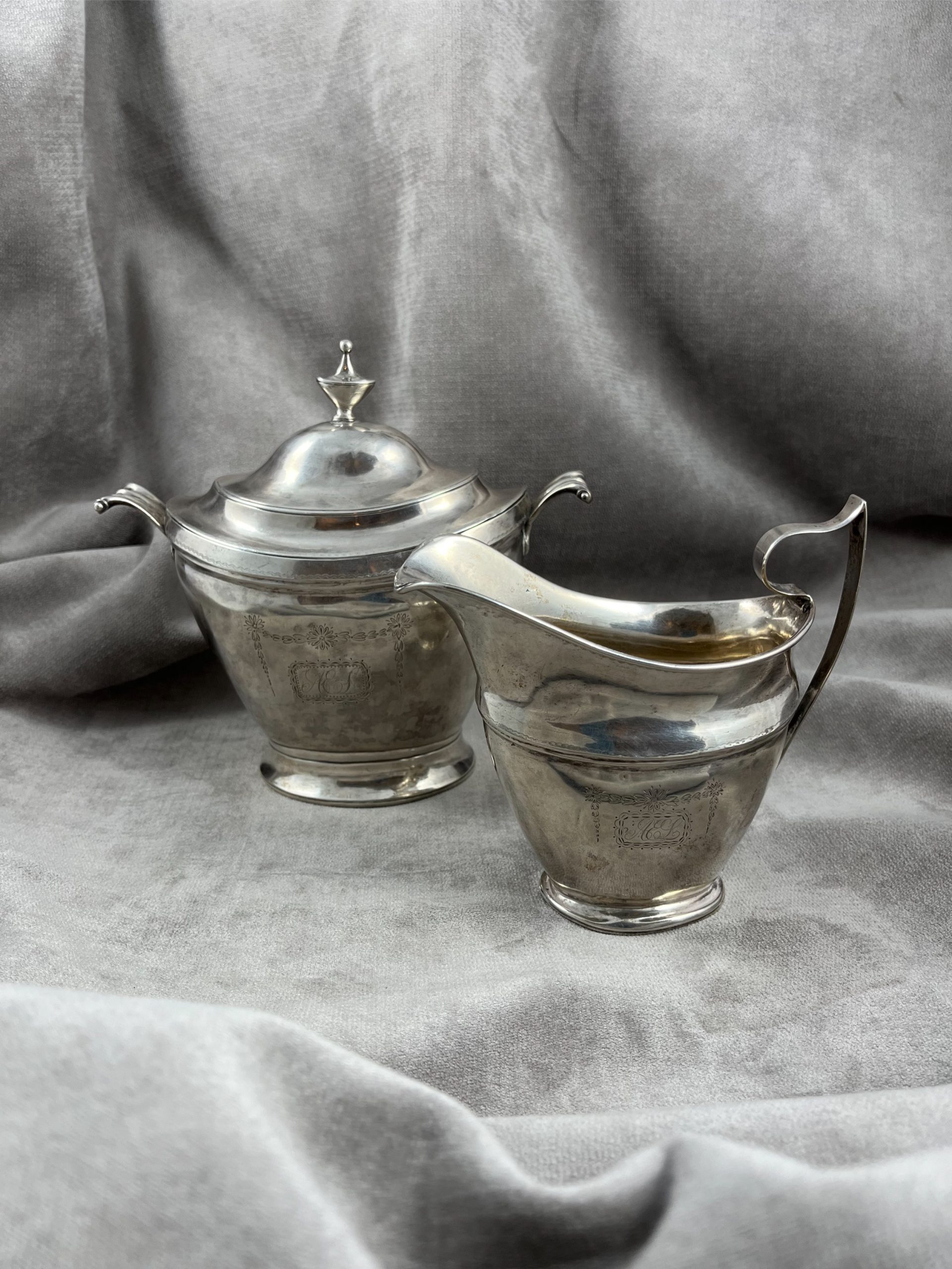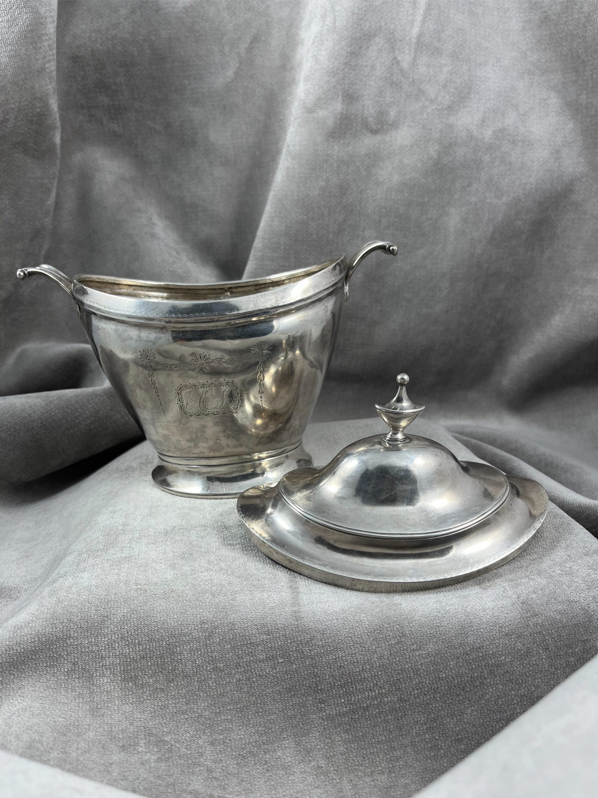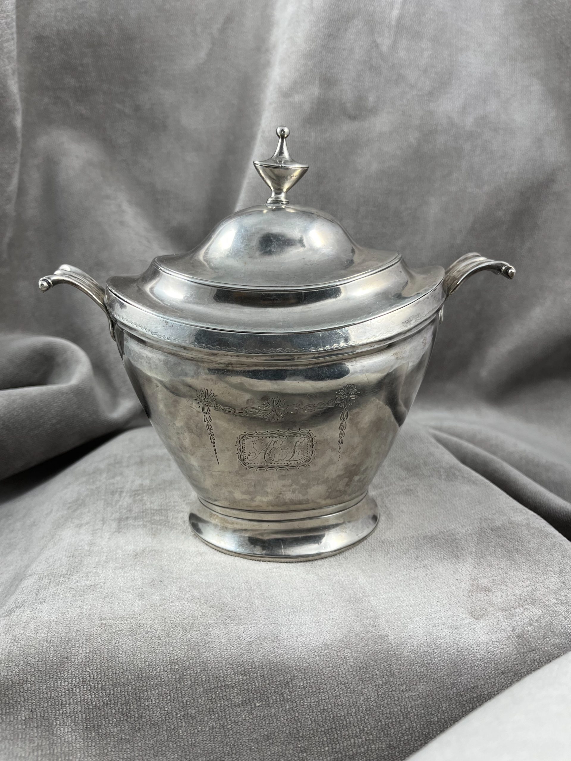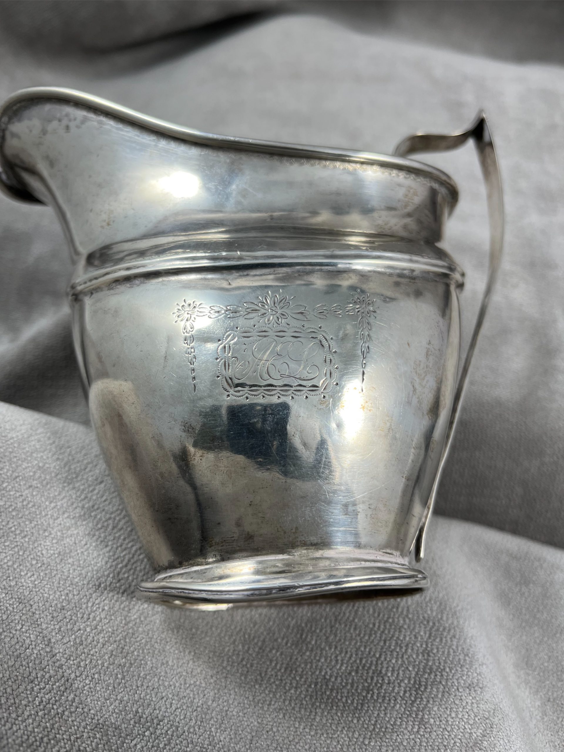 Silas White Howell worked in Albany, NY and New Brunswick, NJ. This set was probably made in Albany as we date it to right about 1800. The set weighs 19 Oz. 12 Dwt. and the sugar has a height of 7 inches.